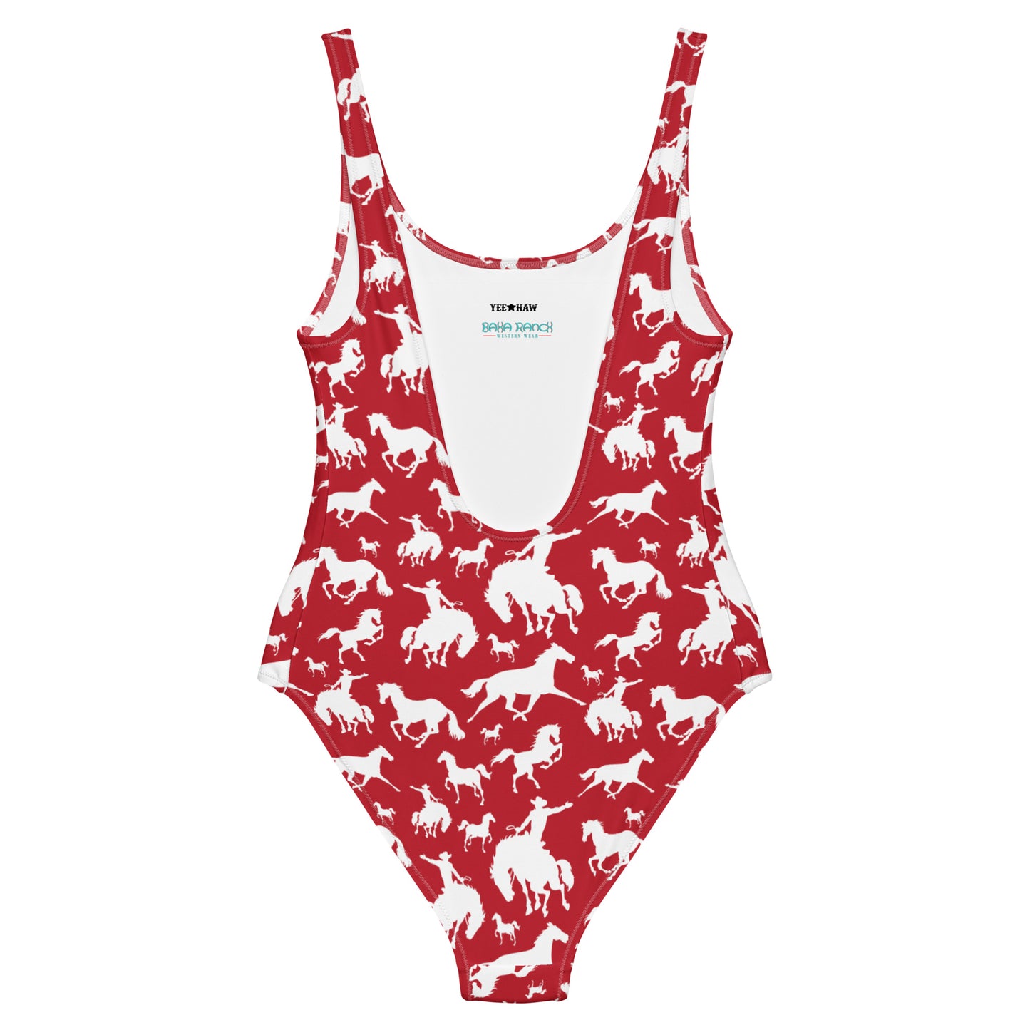 Yeehaw Red Rodeo Cowboy One-Piece Swimsuit