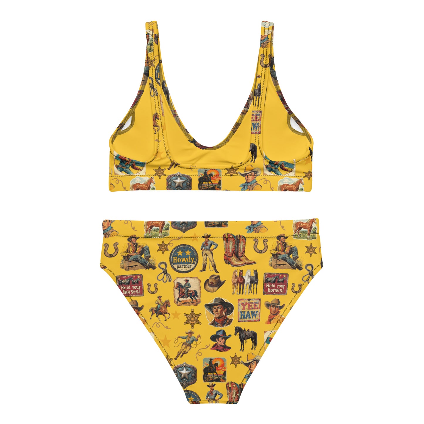 Yeehaw Vintage Cowboy Collage Mustard Bikini